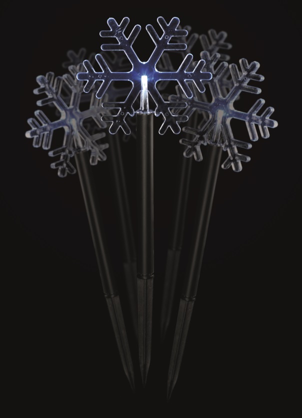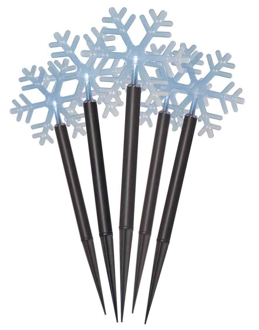 Lights, Snowflake stake, 30 cm, 5 LEDs, cool white + timer