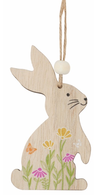 Bunny with meadow motif wooden 5 x 9 x 0.5 cm for hanging