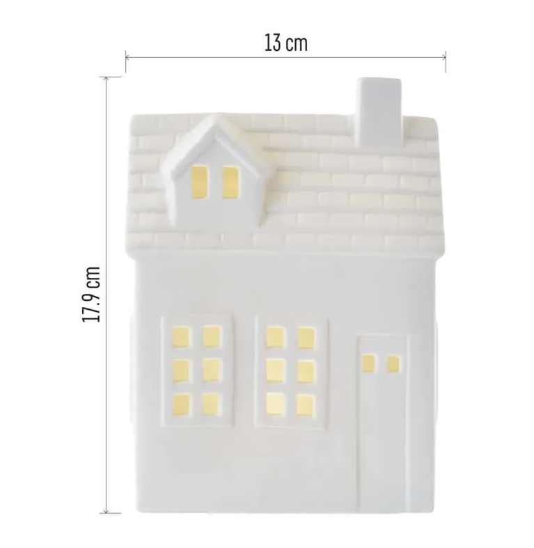 Ceramic house LED light, 1 LED, warm white, 13 × 17.9 × 6.5 cm