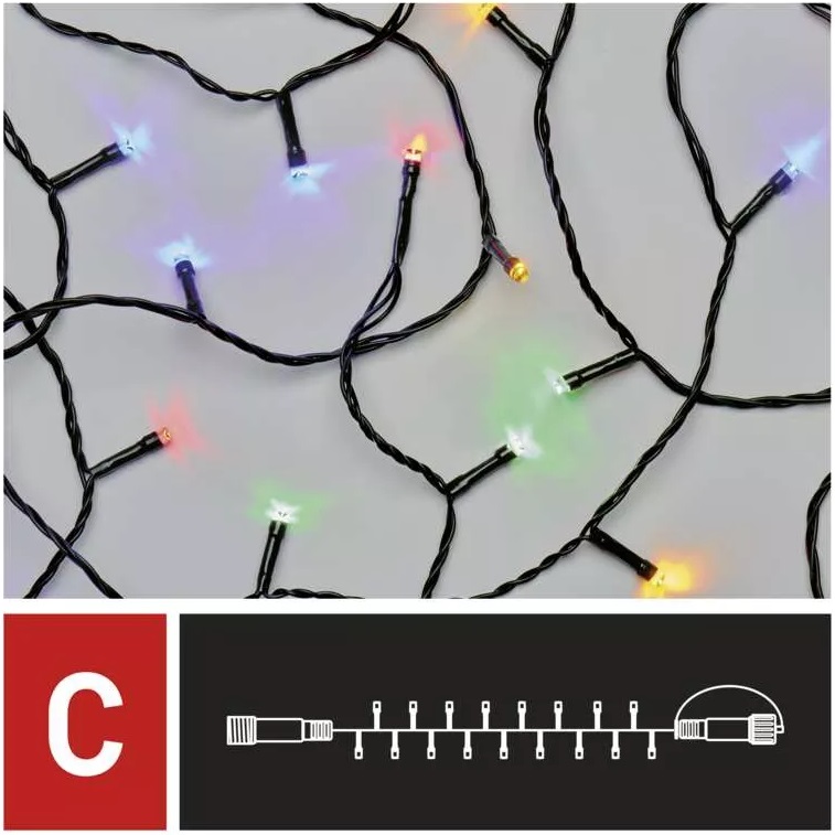 Christmas lighting – extendable string lights, 10 m, 100 LEDs, multicolor + 5 cm power lead