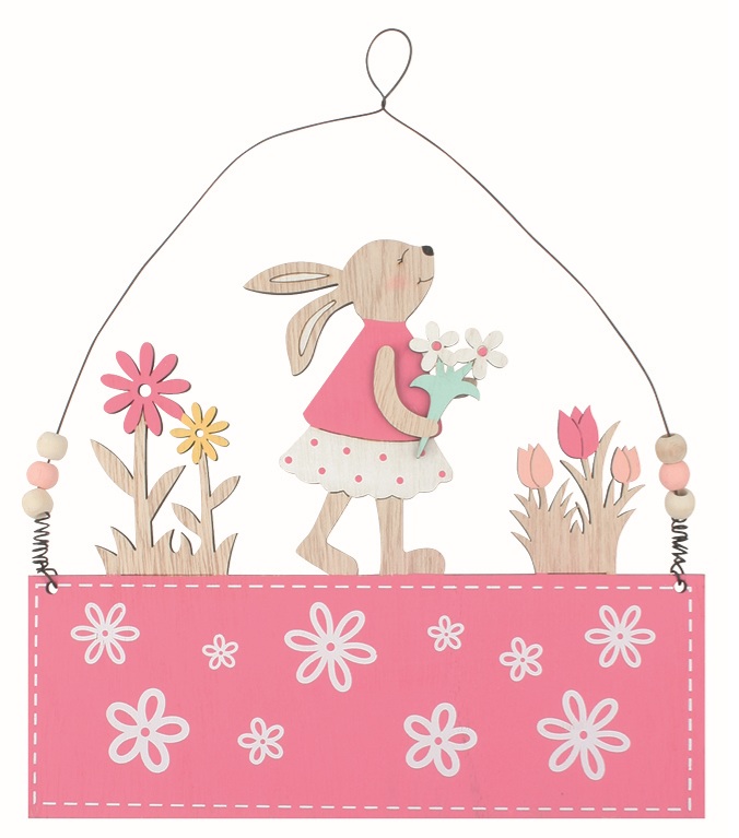 Decoration Bunny in pink 22 x 19 x 1 cm on hang