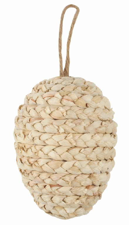 Stylish decorative hanging egg brings a delicate and elegant accent to your home, perfect for spring or Easter decoration. The egg is made of corn husk and features a practical loop for easy hanging. It works well as a standalone decorative piece on branches or as a hanging ornament.