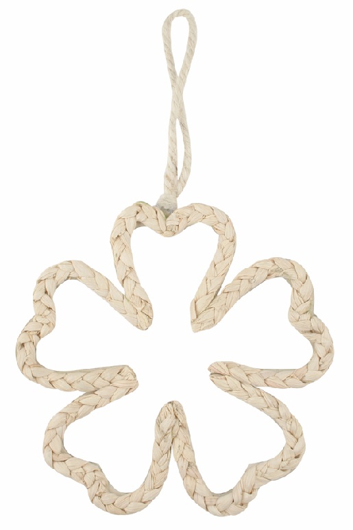 Stylish flower-shaped decoration for hanging brings a delicate and natural accent to your home, perfect for spring or Easter décor. The flower is made of corn husk and features a practical loop for easy hanging. It works well as a standalone decorative piece on branches or as a hanging ornament.