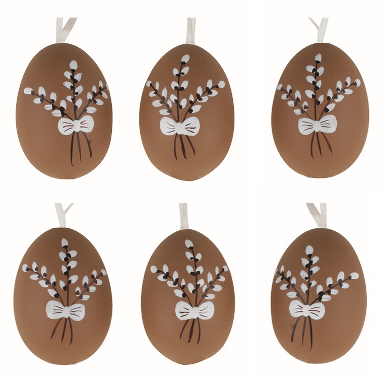 Easter Eggs plastic Brown with a Twig 4 cm for hanging, 6 pcs in a bag