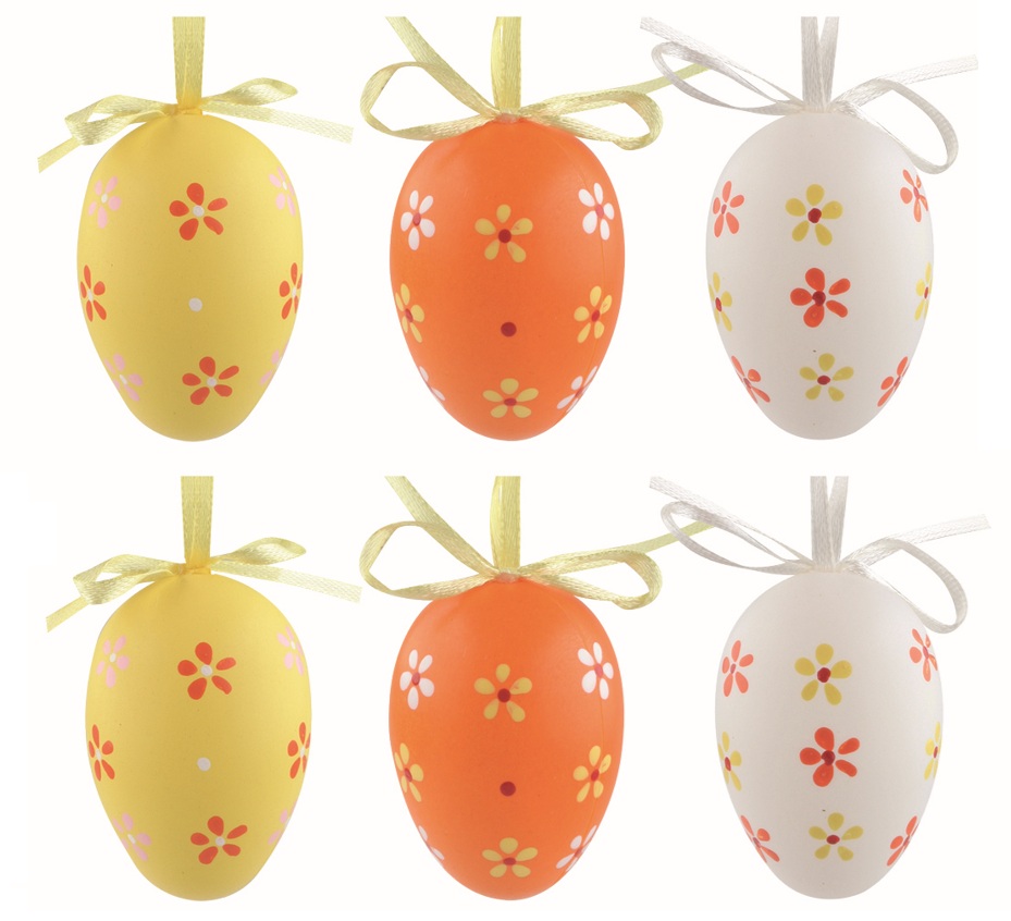 Easter Eggs plastic Flowers 6 cm for hanging, 6 pcs in a bag