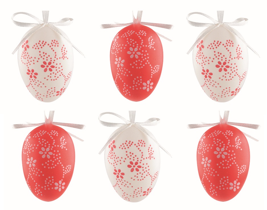 Easter Eggs plastic Flowers red and white 4 cm for hanging, 6 pcs in a bag