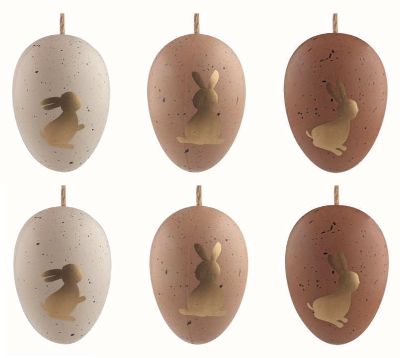 Easter Eggs plastic Golden bunnies on brown 6 cm for hanging, 6 pcs in a bag