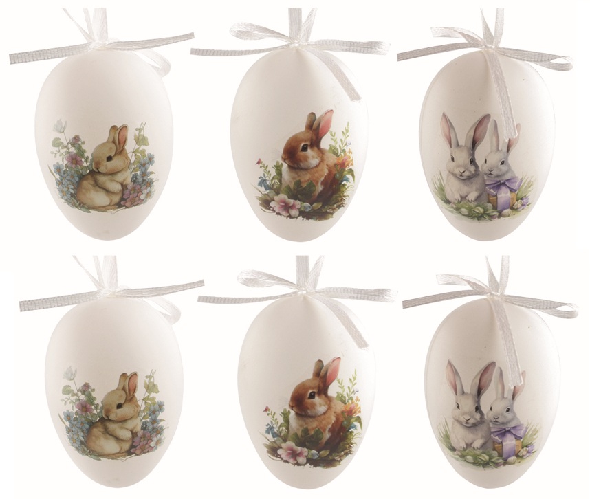 Easter Eggs plastic Painted bunnies 6 cm for hanging, 6 pcs in a bag