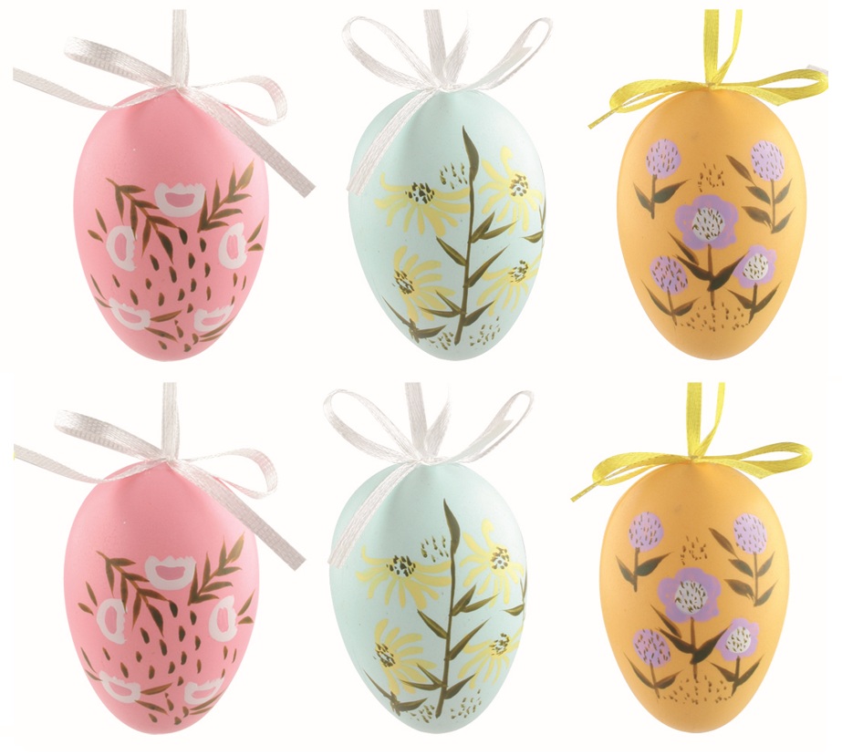Easter plastic Eggs, flowers 6 cm, for hanging, 6 pcs in a bag