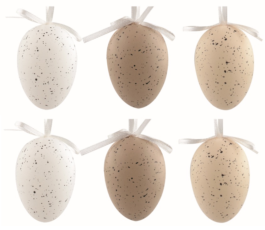Easter plastic Eggs, speckled light brown 6 cm, for hanging, 6 pcs in a bag