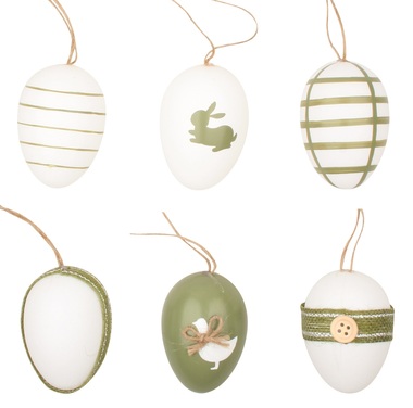 Hanging white/blue Plastic Eggs 6cm, 6 pcs in organza bag
