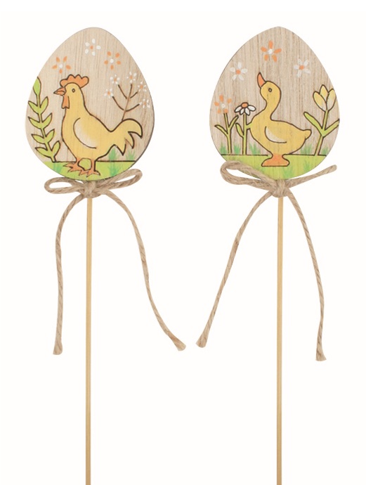 Egg with Goose or Rooster wooden 4.5 x 5.5 x 0.5 cm + stick