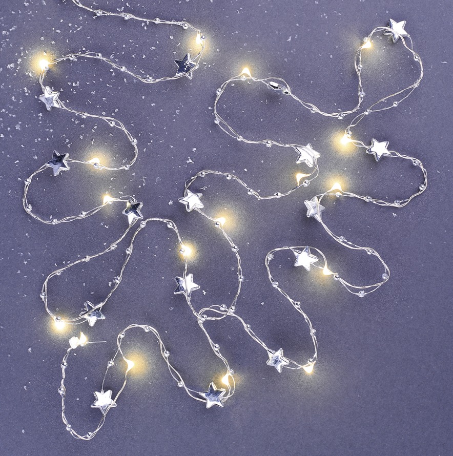 Garland, Silver star 1.9 m, warm white, 20 LEDs