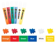 - 5 bottles of glass paint (10.5 ml): orange, red, green, blue, white