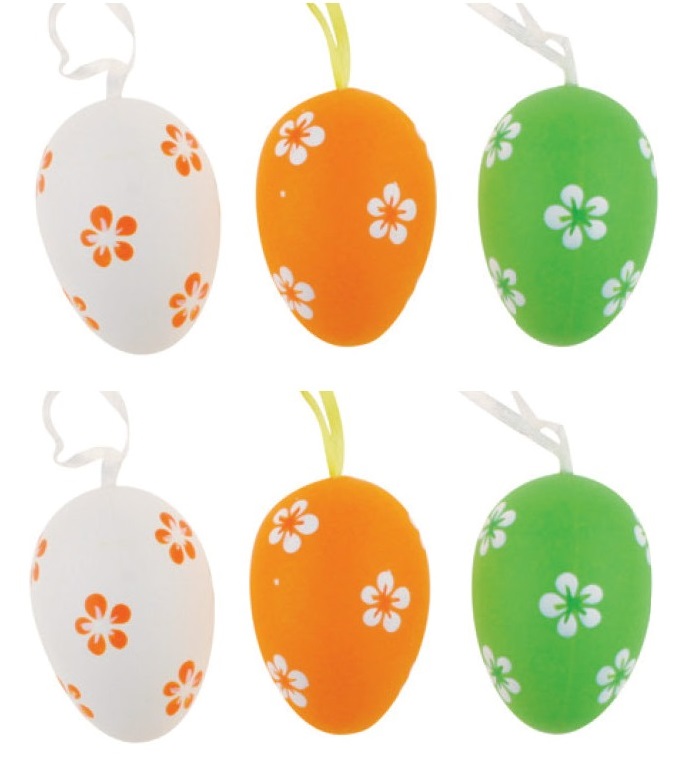 Hanging Plastic Eggs 6 cm, 6 pcs in polybag