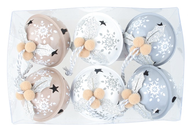 Jingle Bells with Snowflakes 5 cm, 6 pcs