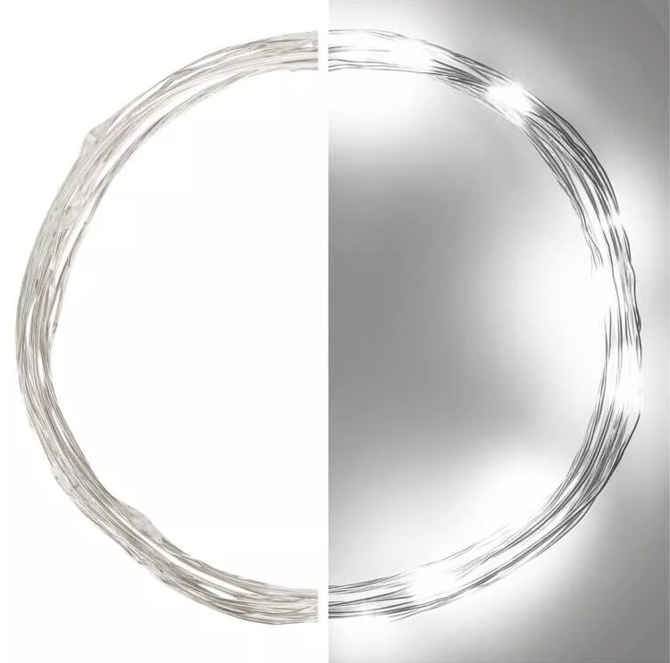 Nano string lights, silver, 1.9 m – 20 LEDs, cool white + timer