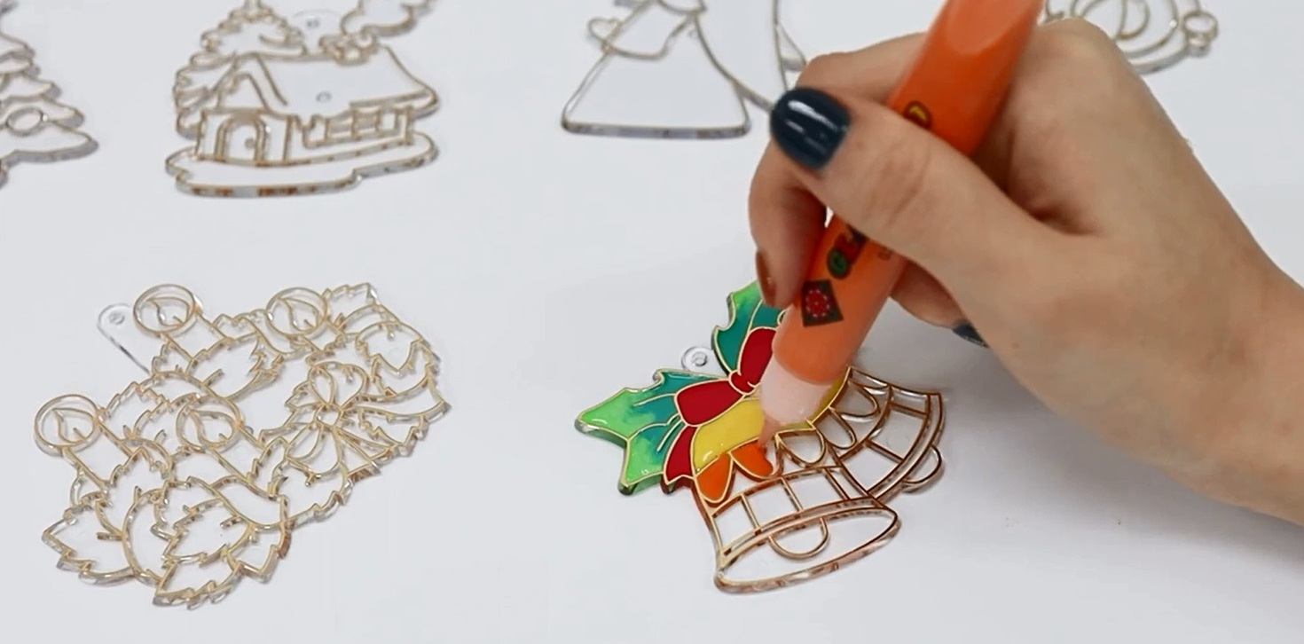 You can decorate plastic slides with, for example, glass dyes, colored glues, glitter and other suitable colors.