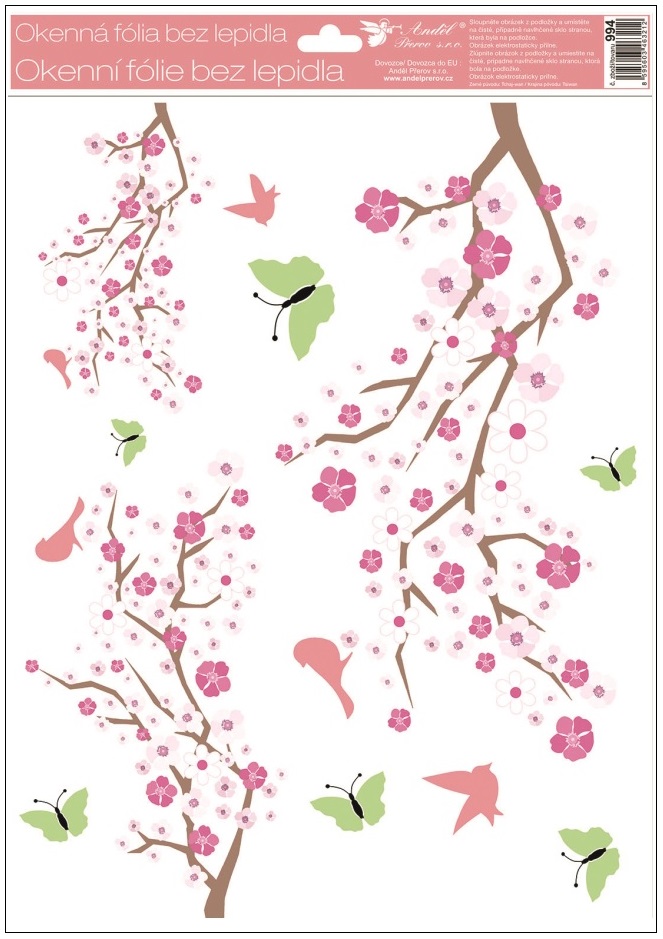 Self-Adhering Window Decoration 30 × 42 cm, Blossoming Branches with Glitter