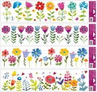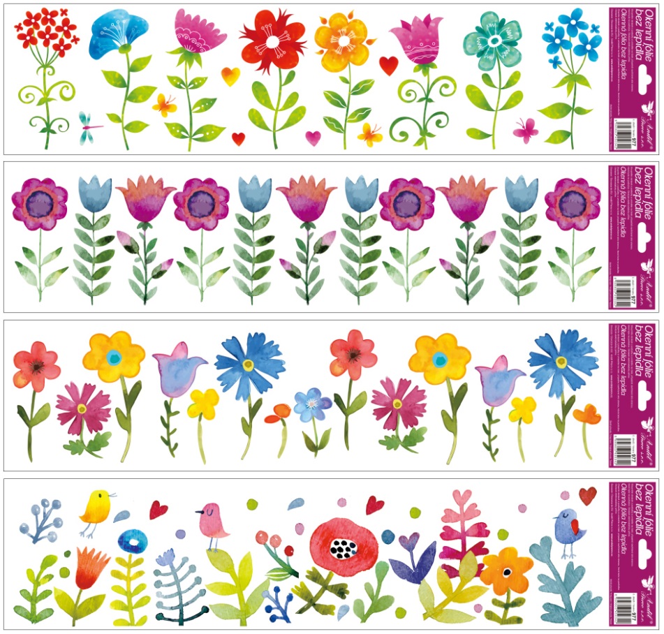 977-01 - Decorative Window Cling – Colorful Flowers in Blue, Pink and Turquoise