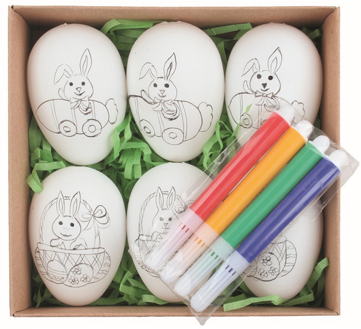 Easter Plastic Egg Set Bunny for Decorating, 6 cm, 6 eggs + 4 markers