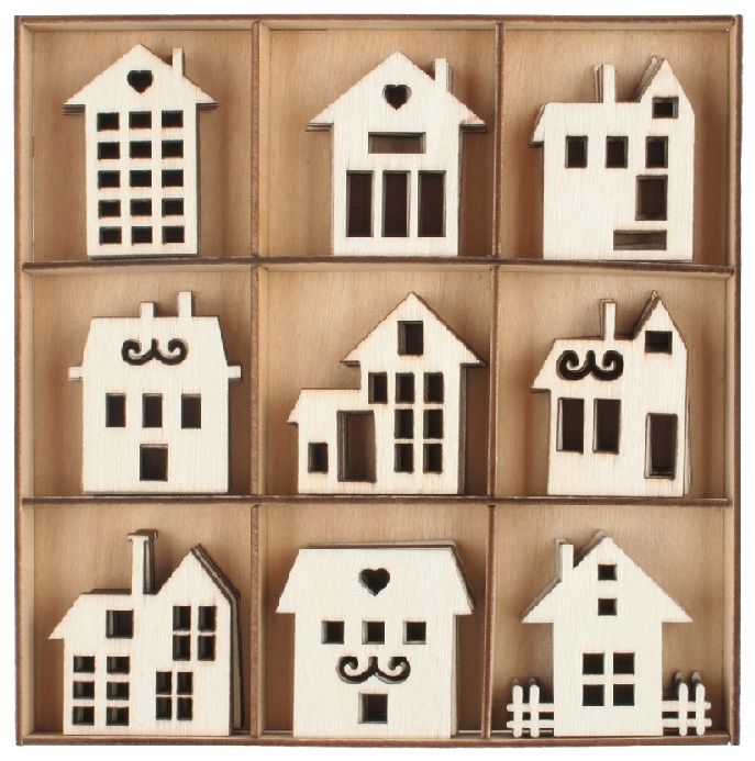 Set of wooden decorations Houses 3.5 x 3 x 0.2 cm, 54 pcs