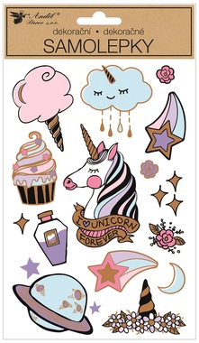 Stickers 14 x 24 cm, White w/Glitters Unicorns