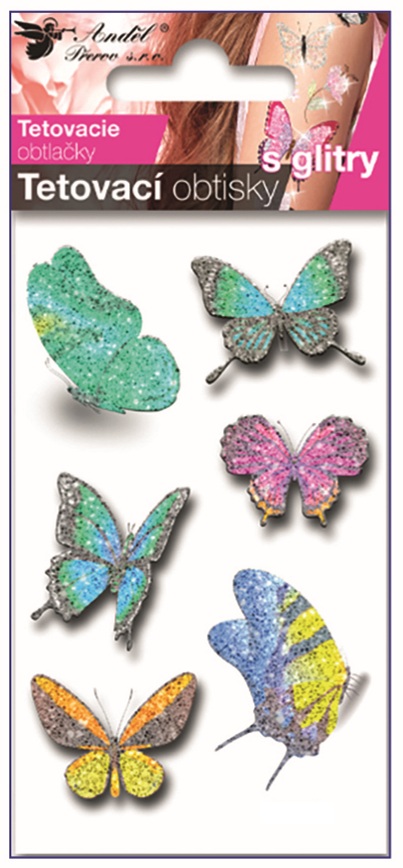 Tattoo Stickers Green Butterflies with glitter 10.5 x 6 cm