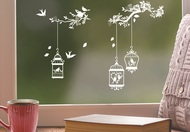 Wall Stickers w/Glitter 27,5 x 41 cm, White Bird Cages