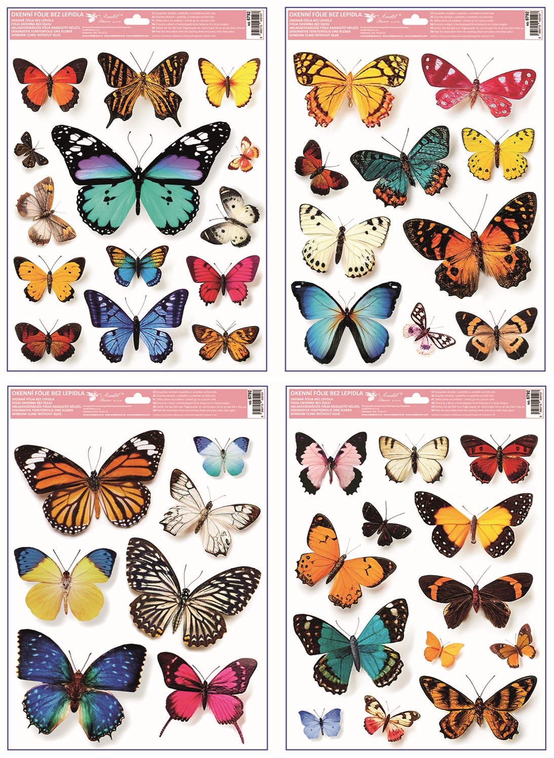The butterfly motif in various shapes and colors looks light and airy and stands out beautifully on windows, showcases and mirrors. Ideal decoration for spring and summer interior decoration, where you want to add freshness and a soft sparkle to the space.