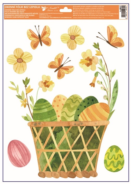 The Easter motif with delicate illustrations of animals, flowers and colorful eggs looks light and harmonious and will stand out beautifully on windows, showcases and mirrors. The shimmering glitter details will give the decoration a subtle shine that will naturally stand out in the light.