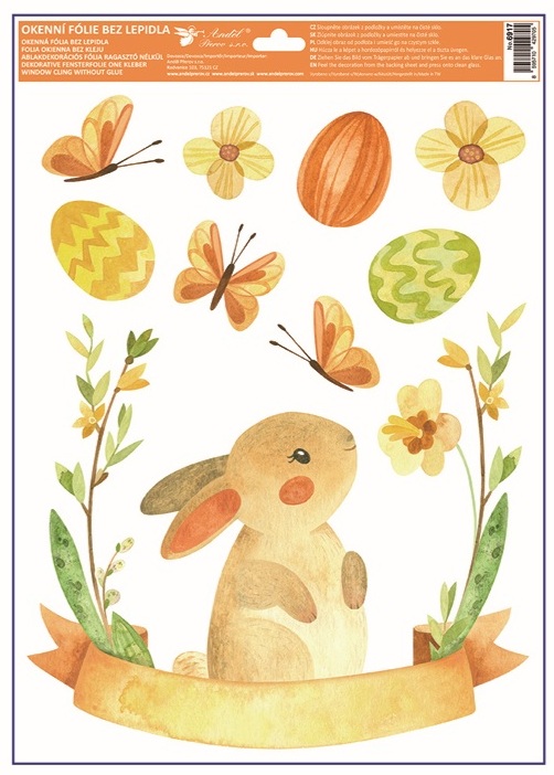 This decorative window film with a delicate Easter motif of animals, flowers and Easter eggs, measuring 30 × 42 cm, will bring spring comfort and a festive mood to your interior. Electrostatically adheres – no glue, leaves no residue, easy to apply and reusable.