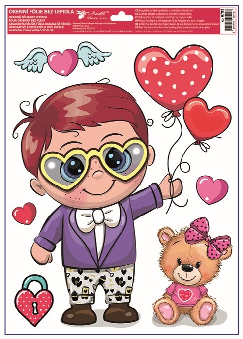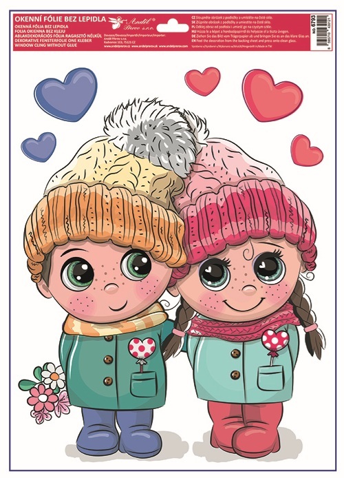 The motif full of hearts and figures expressing love will beautifully decorate windows, showcases and mirrors and create warm, romantic mood. Ideal decoration for thematic interior decoration, when you want to add softness and positive emotions to the space.