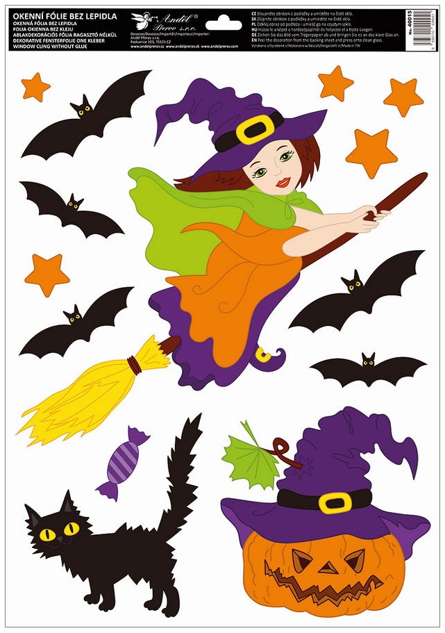 The motif of witches with bats and pumpkins is ideal for autumn and Halloween decoration of windows, shop displays, mirrors, and glass doors. It creates a magical and playful atmosphere for children and adults during darker autumn days.