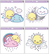 Self-Adhering Window Decorations (also referred to as Window Stickers or Static Clings) do not use adhesive to stick. They use static so they will hold firmly onto the surface without leaving sticky residue. If you keep the backing sheet, they can be stored away safely and reused! They are ideal for windows, shop windows and office windows. They can be applied to glass or any other smooth, flat and clean surface.