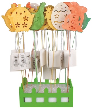 Wooden Fence with Mixed Easter Colorful Decorations, mix of 24 pcs