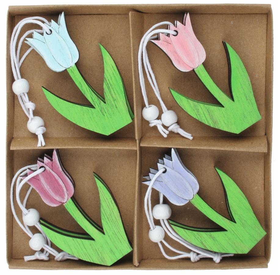 Small wooden flowers for hanging in four color variations are a versatile decoration suitable for creative crafts and seasonal décor. Each flower has a practical loop for easy hanging – you can hang them on branches, interior arrangements, or use them as decorations on doors, windows, or gift packages. Soft pastel colors bring a fresh spring atmosphere to your projects and add a playful decorative accent that complements your style beautifully. These wooden flowers are perfect for spring décor, creative DIY projects, and celebration decorations.