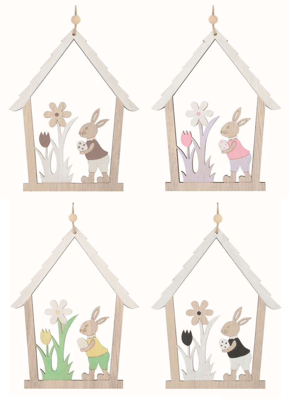 Wooden House with a Bunny 13.5 x 17 x 0.5 cm for hanging
