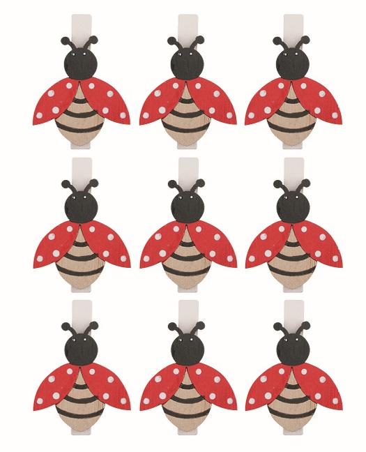 Wooden Ladybug 3 x 3.5 x 0.3 cm on a peg, 6 pcs in a bag