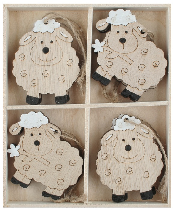 Wooden Sheep 4.5 x 6 x 0.5 cm for hanging, 8 pcs in a box