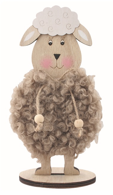 Wooden Sheep brown 11 x 20 x 6 cm on stand