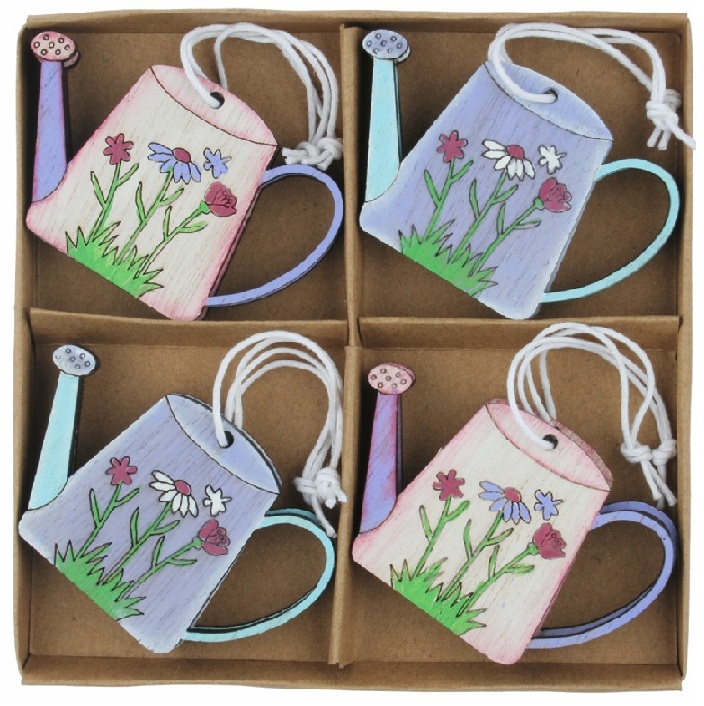 Wooden Watering Can purple 6.5 x 4 x 0.5 cm for hanging, 8 pcs in a box